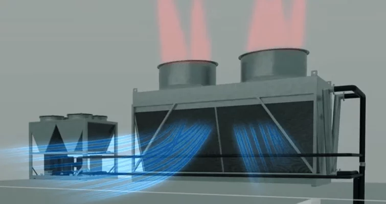Lorsque les températures extérieures sont élevées, la machine frigorifique génère mécaniquement la température de sortie souhaitée de l'eau glacée.